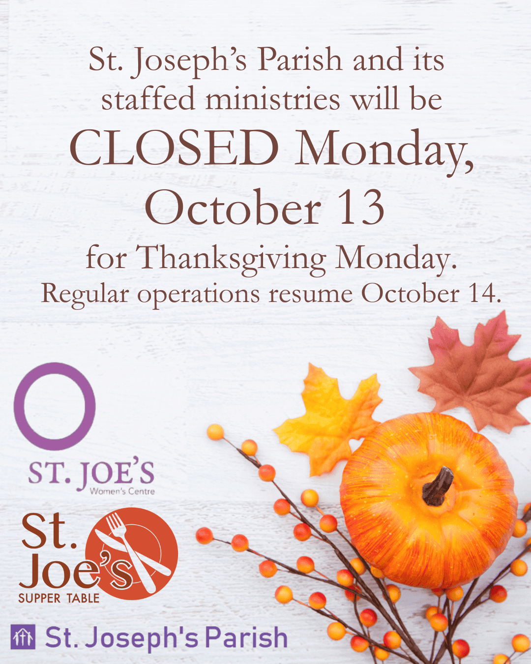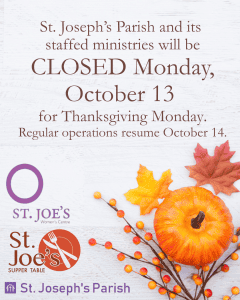 St. Joseph’s Parish proudly welcomes and serves individuals from the 2SLGBTQ+ community and those from any cultural background and dis/ability. We value the contributions that everyone brings to our Parish and look forward to having you join us!
